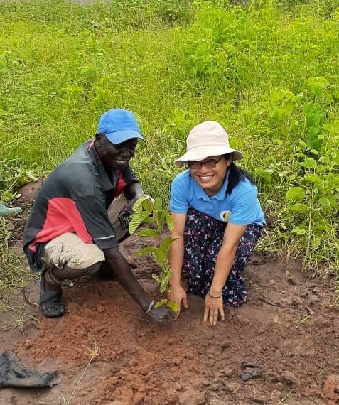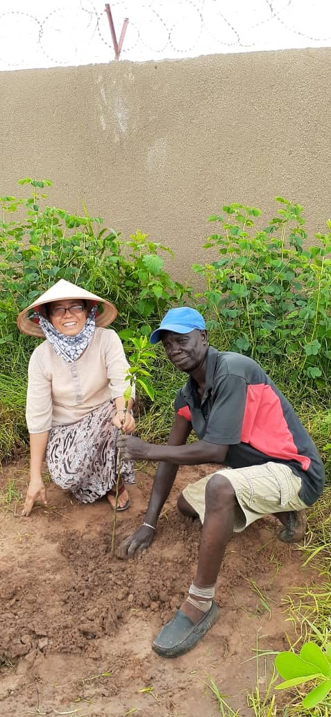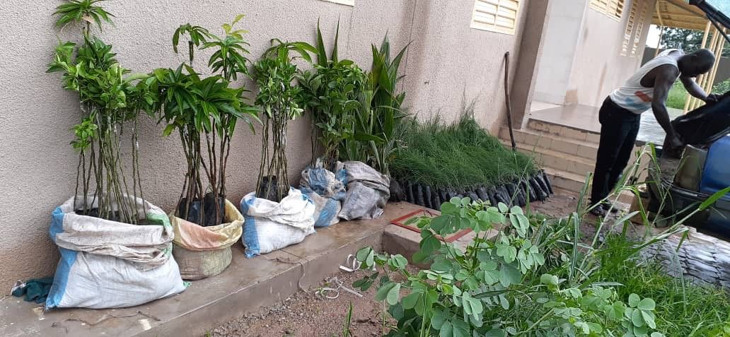 Déjà en juillet 2019, avant la saison des pluies, différents arbres fruitiers sont plantés autour du dispensaire.